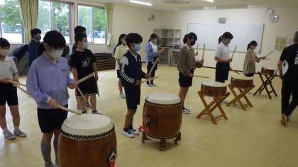 5月17日 今年度第1回目のクラブ活動を行いました。感染症対策として、人との距離を開けたりするなど工夫して行いました。伝統芸能である「剣舞」や「早川流太鼓」を、外部講師の方に教えていただきました。