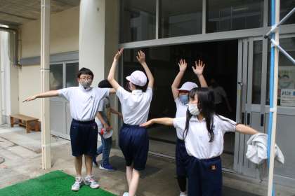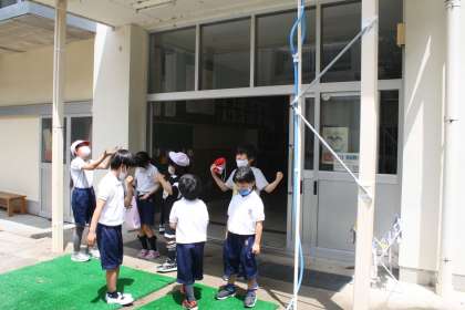5月18日 暑い日がやってくるのに備えて、校内整備員の方が、子どもたちの昇降口に、ミストを設置してくださいました。まだ試運転ですが、子どもたちは放課や体育の後に、気持ちよさそうに浴びていました。