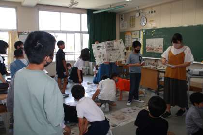 6年生が、社会科の歴史の勉強で、奈良の大仏様の大きさについて考えました。、実際に、大仏様のの座高を新聞紙をを並べて考えてみました。6年生自動10人分が、大仏様の座高と一緒で驚きました。
