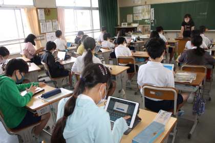 6月3日 今日は、学習用タブレットの持ち帰りです。学校でもらったビニール袋に入れて持ち帰ります。子どもたちは、体育の鉄棒の時間の振り返りを記入したり、本日家でやる宿題を配付してもらったりするなど、タブレットを活用しています。