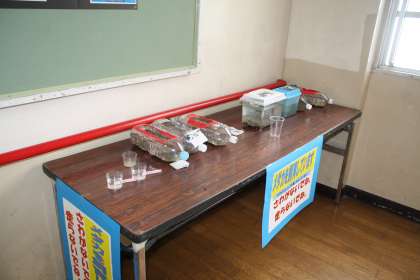6月3日 5年生が理科の授業でメダカを育てています。班ごとに、水槽や手作りのペットボトル水槽に入れてお世話をしています。最近、卵が産まれたので、赤ちゃんが生まれてくるのを楽しみにしています。