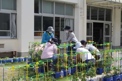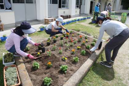 学校サポーターの、環境ボランティアさんが、学校の花壇に花の苗を植えてくださいました。いつも、校庭に彩を添えてくれています。ありがとうございます。明日は、雨が降るので苗も喜ぶことでしょう。
