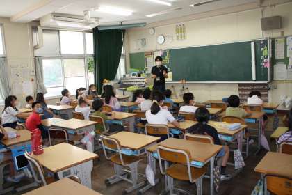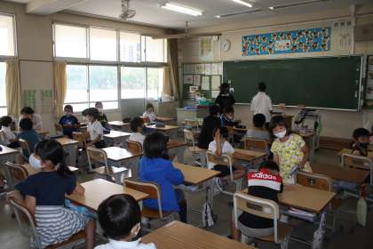 給食後、ミニ通学団会を行いました。日頃の登下校の様子を振り返り、話し合いました。「班長さんが、いつもしっかりあいさつをしているので、みんなもあいさつができているよ」「おしゃべりしていて、歩くのが遅い子がいるので、おしゃべりしないようにしましょう」などの意見が出ました。これからもみんなが安全に登下校できるように協力していきましょう。