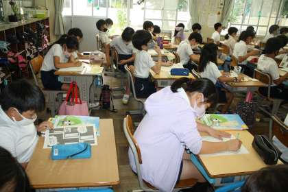 4年生の社会科の学習で、ごみについての新聞を書きます。新聞をどのように書いたらよいかを学ぶために、中央図書館の方をお招きして、出前講座をしていただきました。ペンタゴンチャートを使って、まとめる方法を学びました。できるのが楽しみです。