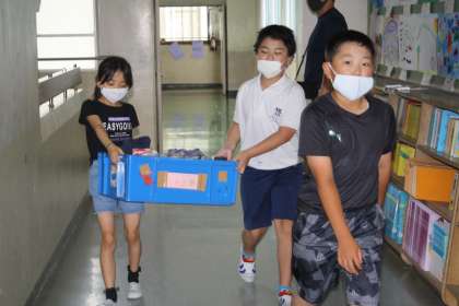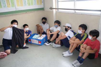 「着られなくなった服で世界の子どもたちの力になろう」をテーマに、JRC委員会の子どもたちが、全校児童に呼びかけ、着られなくなった服を集めました。集めた服は、世界の子どもたちに届け、役立てていただく予定です。多くの子どもたちが、協力してくれました。
