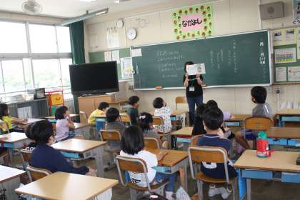 今日、はじめて「ねぎぼうずの会」の方々による「よみきかせ」が行われました。紙芝居や大型本を使ったりするなど、工夫して読み聞かせをしててくださいました。子どもたちは、食い入るように本を見つめ、楽しんでお話を聞いていました。