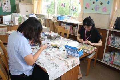 図書館ボランティアの方々が、図書館の本の修理をしてくださいました。人気のあるる本ほど、破れることが多いようです。ボランティアの方々が修繕してくれたおかげで、また、本が読めるようになります。ありがたいですね。