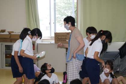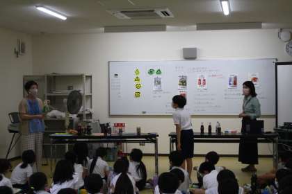 4年生がエコット(豊田市環境学習施設)の方に来ていただき、環境学習をしました。今後、お買い物をするときに、どのような商品を選ぶと環境にやさしいのかを考えました。無駄なごみを減らし、リサイクルできるものや、使い終わった後に洗って使えるものなどがよいことを学びました。このことを3Rと呼ぶことも教えてもらいました。