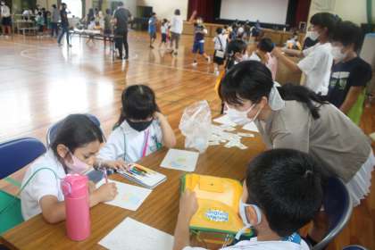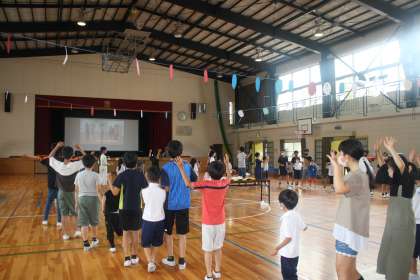 6年生主催の夏祭りで、最後に「朝日丘音頭」を踊りました。「何が一番楽しかった?」と聞くと、「朝日丘音頭!」と答える1年生もいました。地域の踊りを伝承していけるといいです。