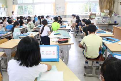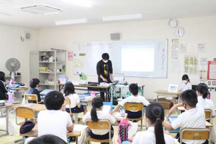 4年生のきらめき学習では、エコについて考えていきます。今日は、学校のエコについて考えました。「ごみの分別をしているのでエコだと思う」「水を出しっぱなしにして手を洗っているのでエコじゃないと思う」など、さまざまな意見が出されました。今後、調べを進めていきます。