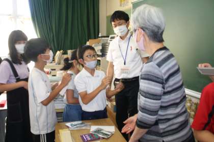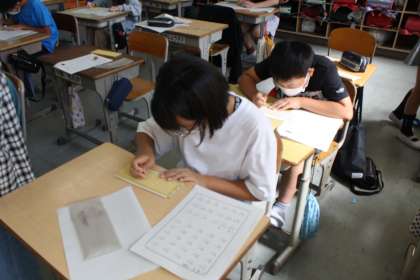 4、5年生が障がいを理解する実践教室を行いました。4年生は聞こえに障がいがある方の手話や通訳さんの役割について学びました。5年生は、見え方に障がいがある方人のための展示を、実際に作ってみました。少しでもその方々の気持ちが理解できたことと思います。