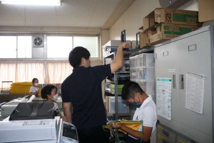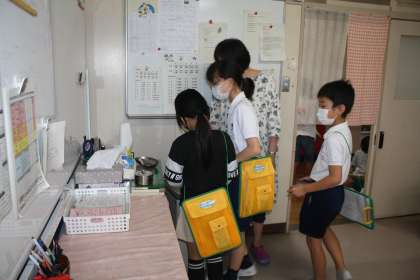 4年生が、きらめき学習で「エコ」について学習を進めています。この日は、学校中を歩き回り、エコに気を付けている所を探しました。