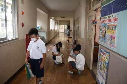 4年生が学校中を探し回って、エコ見つけをしました。これから、全校児童に向けて、エコ活動を伝えていきます。