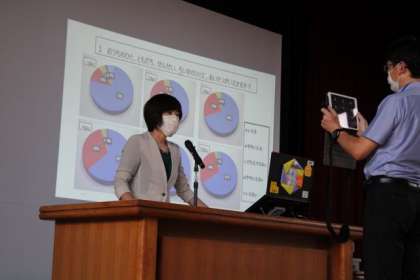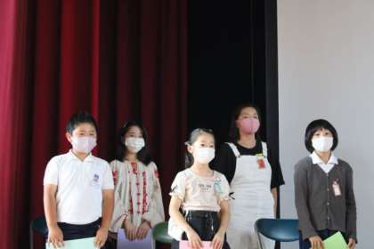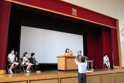 前後期切り替え式を行いました。はじめに、交通安全標語の入選発表を行いました。「あぶないよ はなしにむ中 じこのもと」の標語が、煌門の横のフェンスに掲示されます。次に、5人の代表児童から、頑張ったこと・頑張りたいことの発表がありました。最後に校長から、全児童に行ったアンケートの集計をもとに、授業への取り組みや友だちとのかかわり、あいさつ・掃除について話をしました。 後期からも頑張っていきます。