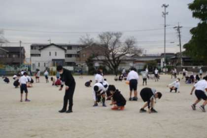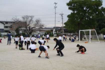 今年は、運動会準備のために、全校で集まって石拾いをしません。そのため、5年生が、みんながけがをしないように、進んで石を拾っています。