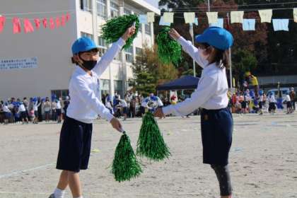 11月6日 1、2年生は、「ドラえもん」の音楽に合わせてポンポンダンスを踊りました。