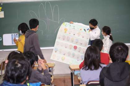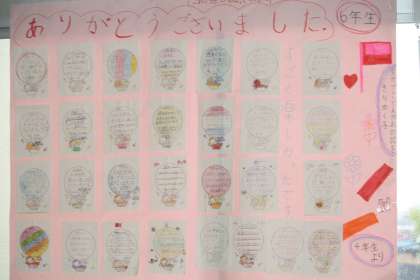 6日の運動会では、準備や片付け、当日のお手伝いなど、6年生が頑張ってくれました。その様子に、下の学年が感謝の気持ちをメッセージに書いて送りました。温かい心の交流がありました。