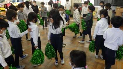 子どもたちが、運動会で踊ったドラえもんを披露しました。お別れに涙ぐんでいる子もいましたが、「がんばってね」「元気な赤ちゃんを産んでね」と、声をかけていました。先生も「みんなもがんばってね」と応えていました。