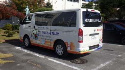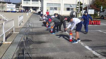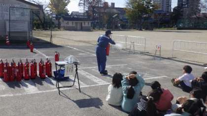 4年生は、消火器を使って、火を消す練習をしました。