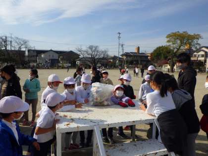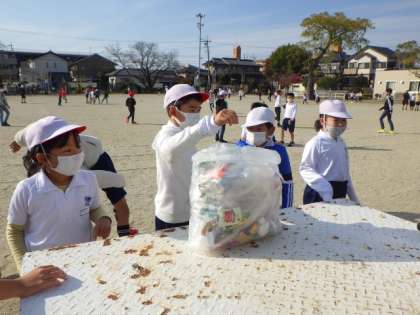 今日は、1,3,5年生の有志が、昼の放課に運動場のごみ拾いを行いました。