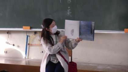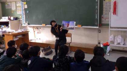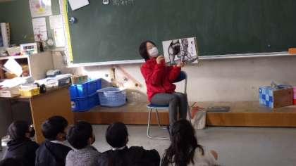 文字の少ない相撲の様子を描いた絵本に、6年生の子どもたちが「やったあ」など歓声を上げて喜んでいました。素直な子どもたちです。
