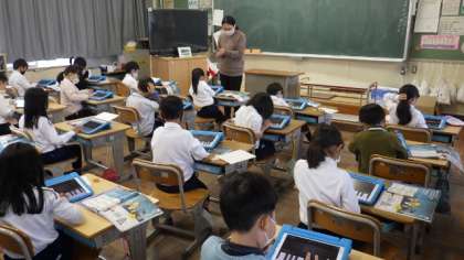 タブレットのキーボード機能を使って、きらきら星を演奏していたクラスがあります。