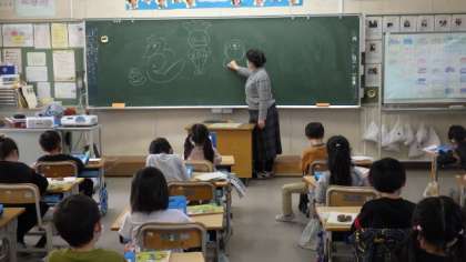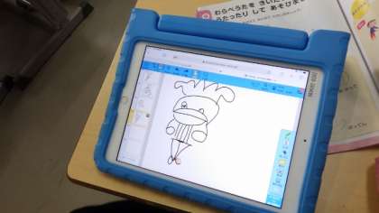 タブレットに、絵描き歌を歌いながら、絵を描いていたクラスもあります。