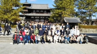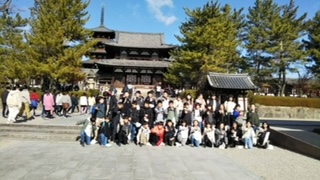 法隆寺でクラス写真を撮りました。