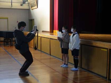 企画委員の児童は、クリスマス集会についての話をしました。
