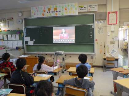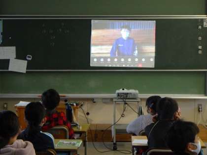 今朝は、児童朝会がオンラインで行われました。