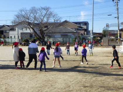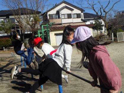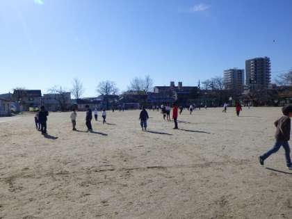 根川タイム(長放課)に、子どもたちは外で遊ぶため、元気に運動場に出てきました。