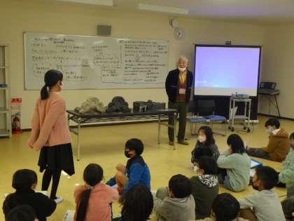3年生のきらめき学習(総合的な学習の時間)で、学校の歴史を勉強している中で、校長室にあった古い鬼瓦を見つけました。この鬼瓦が、昔校舎に使われていたことがわかり、今日は、その鬼瓦職人の西村さんを招いて、お話をお聞きしました。