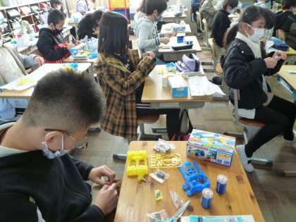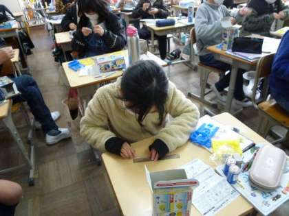 子どもたちは、エナメル線を覆うビニルをはがすことに苦戦していました。