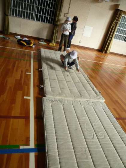 4年生が、体育の授業でマット運動に取り組んでいます。
