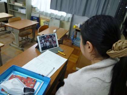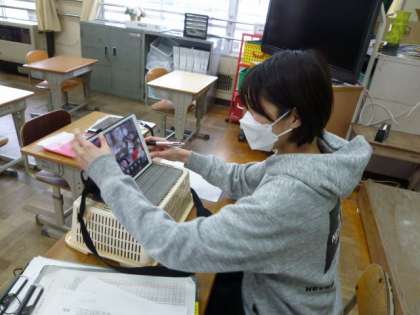 休校中ですが、オンラインでの学習を行っています。画面上で、子どもたちの元気な姿を見て、校長も担任も安心しています。
