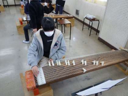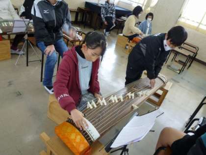 音楽の授業で、4年生以上は筝(そう)の演奏をしています。