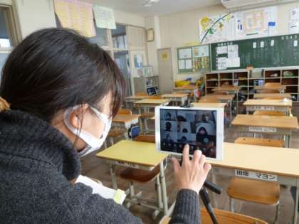 5,6年生が学年閉鎖のため、オンラインでの授業を行っています。閉鎖をしていても、顔を見ることができ、ほっとしています。