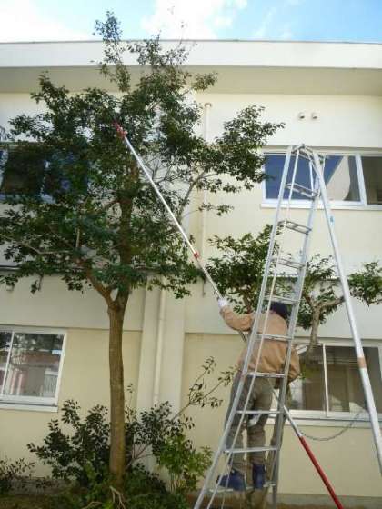 校内整備員の木戸さんのおかげで、大木の枝が切られ、とてもさっぱりしました。