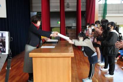 感想文・作文・感想画・書き初め大会・調べるコンクールなどの作品の表彰を行いました。 また、校長からはたとえ賞は取れなくても、がんばってきた人は素晴らしいということと、当たり前のことを当たり前にやれる人(あいさつ・時間を守ること・話をしっかり聞くこと)も素晴らしいというお話をしました。