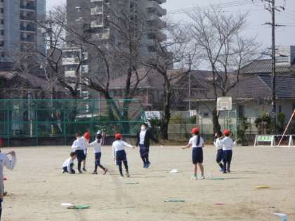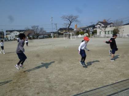 2年生が、体育の学習で縄跳びをしています。
