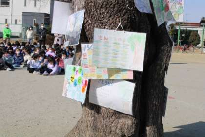 3月7日 子ども達は、せんだんの木にメッセージを送りました。