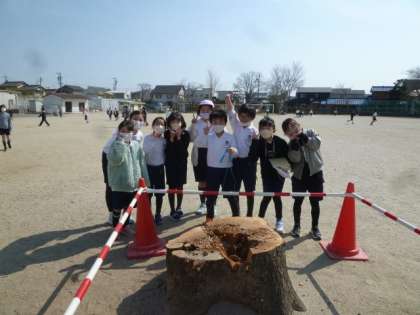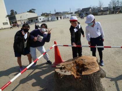昨日、とうとうせんだんの木が切られてしまいました。今は、切り株が残っているだけです。子ども達は、切り株にせんだんの実をお供えしたり、その周りで追いかけっこをしたりしています。今月末には、伐根される予定です。