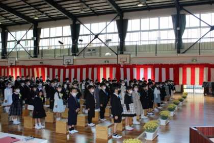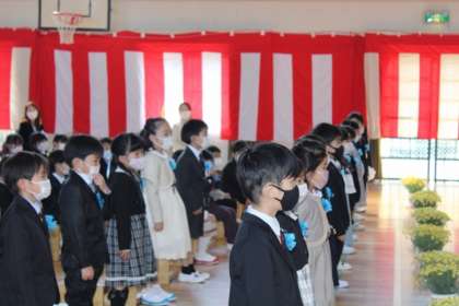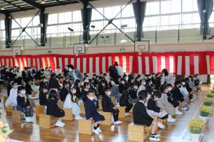 これから、根川小学校の1年生としてみんなとなかよく、いろいろなことにチャレンジしましょう。みんなにあいさつをして、元気に学校生活を送るよう、お話をしました。