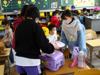 1年生初めてのお仕度 6年生が手伝ってくれたよ