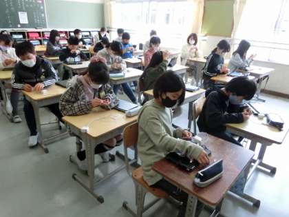 昨年度のクラスに置いてあった、各自の学習用タブレットを今年度のクラスに引っ越しました。名前シールを付け替えたり、保管する場所を決めたりしました。