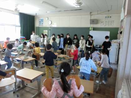 1年生が自分たちで掃除をするために、6年生のお兄さんお姉さんに、掃除の仕方を教えてもらいました。列を作って上手に掃除をする姿に、1年生は感心して見ていました。