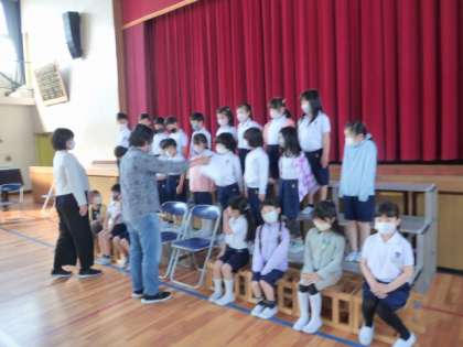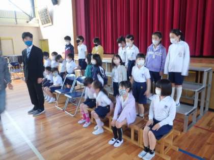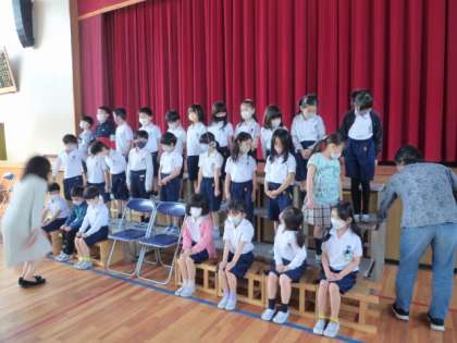 指示を聞いて、上手に並んでいます。