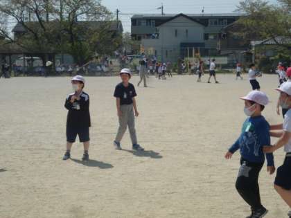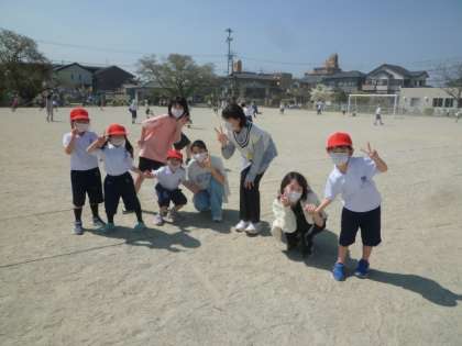 6年生のお兄さん、お姉さんに遊んでもらっている1年生もいます。