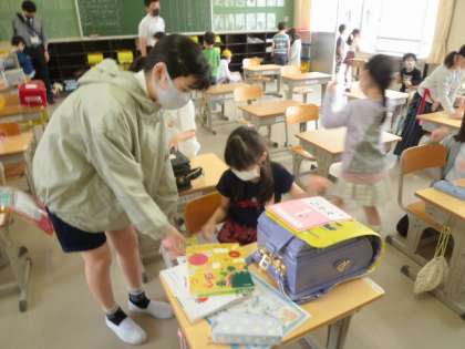 6年生に手伝ってもらいながら、一人でもできるようになってきました。早くできて、お絵かきをしている子もいます。