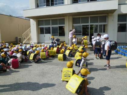 無時に下校ができるよう、保護者の方々や先生も付き添って下校しました。
